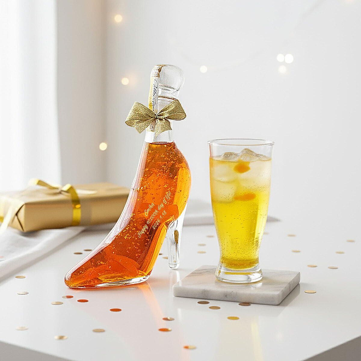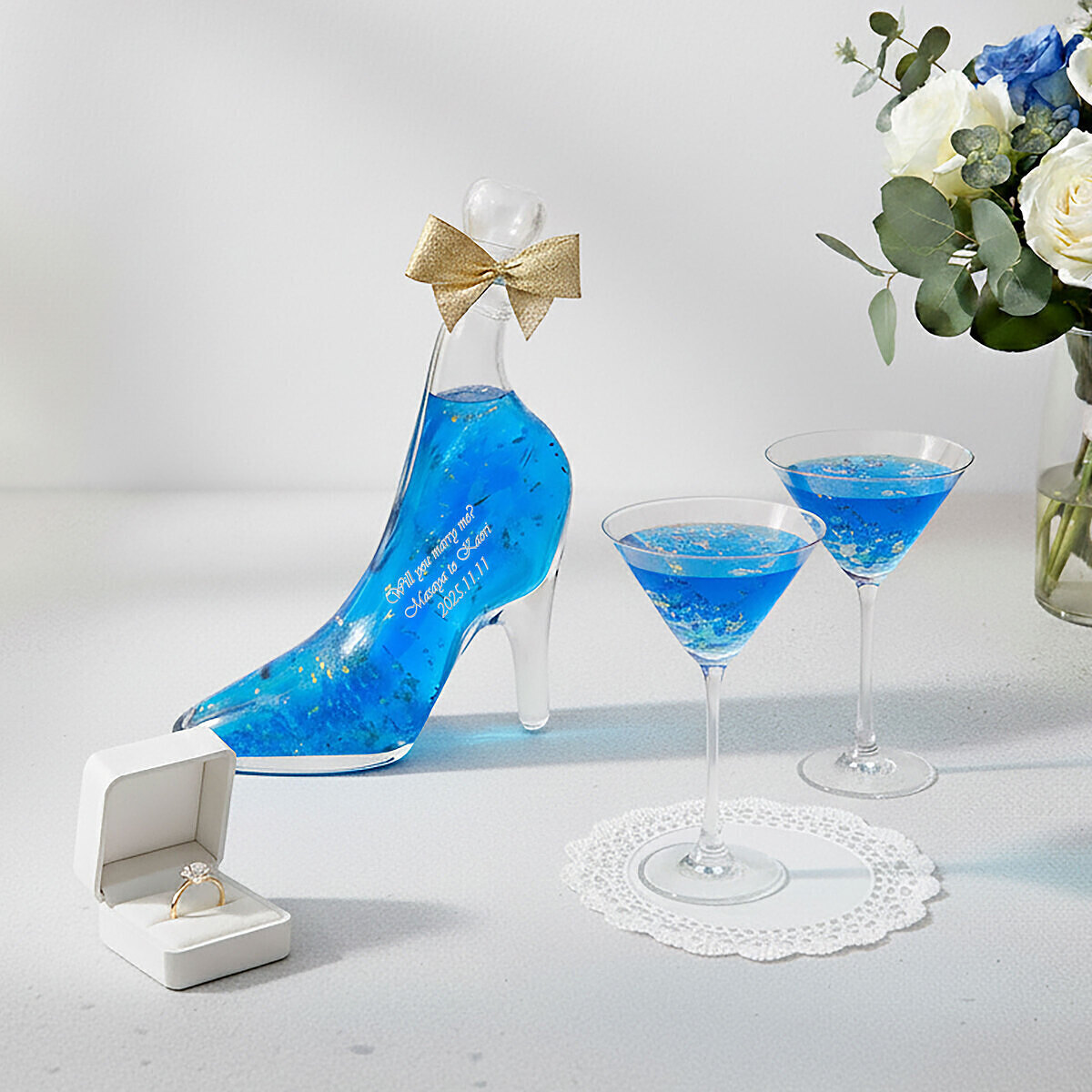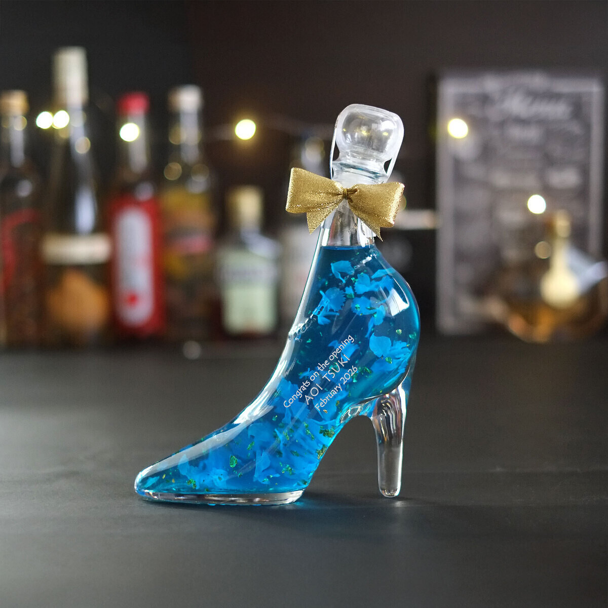 ハイヒールを模したボトルの中に、目の覚めるような美しいリキュール。ロマンチックな贈り物をお探しの方にピッタリです。ハーバリウムのように飾ったり、また飲み終わった空き瓶にフェアリーライトを入れて飾ればインテリアのアクセントにも。