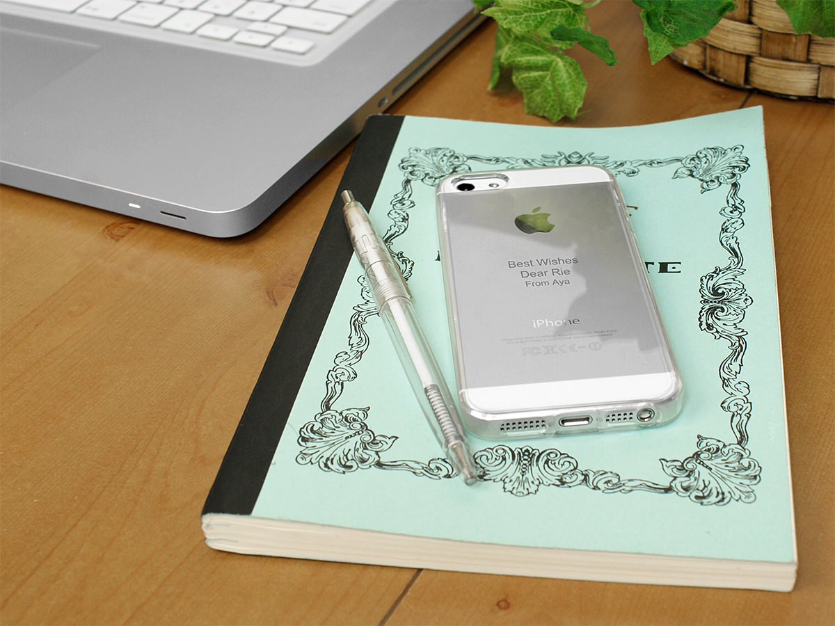 iPhone 本体のデザインを損なわないクリアケース。側面はバンパー型でがっちり守ってくれます。メッセージは内側からプリントするので、まるで本体にメッセージが入っているかのよう。