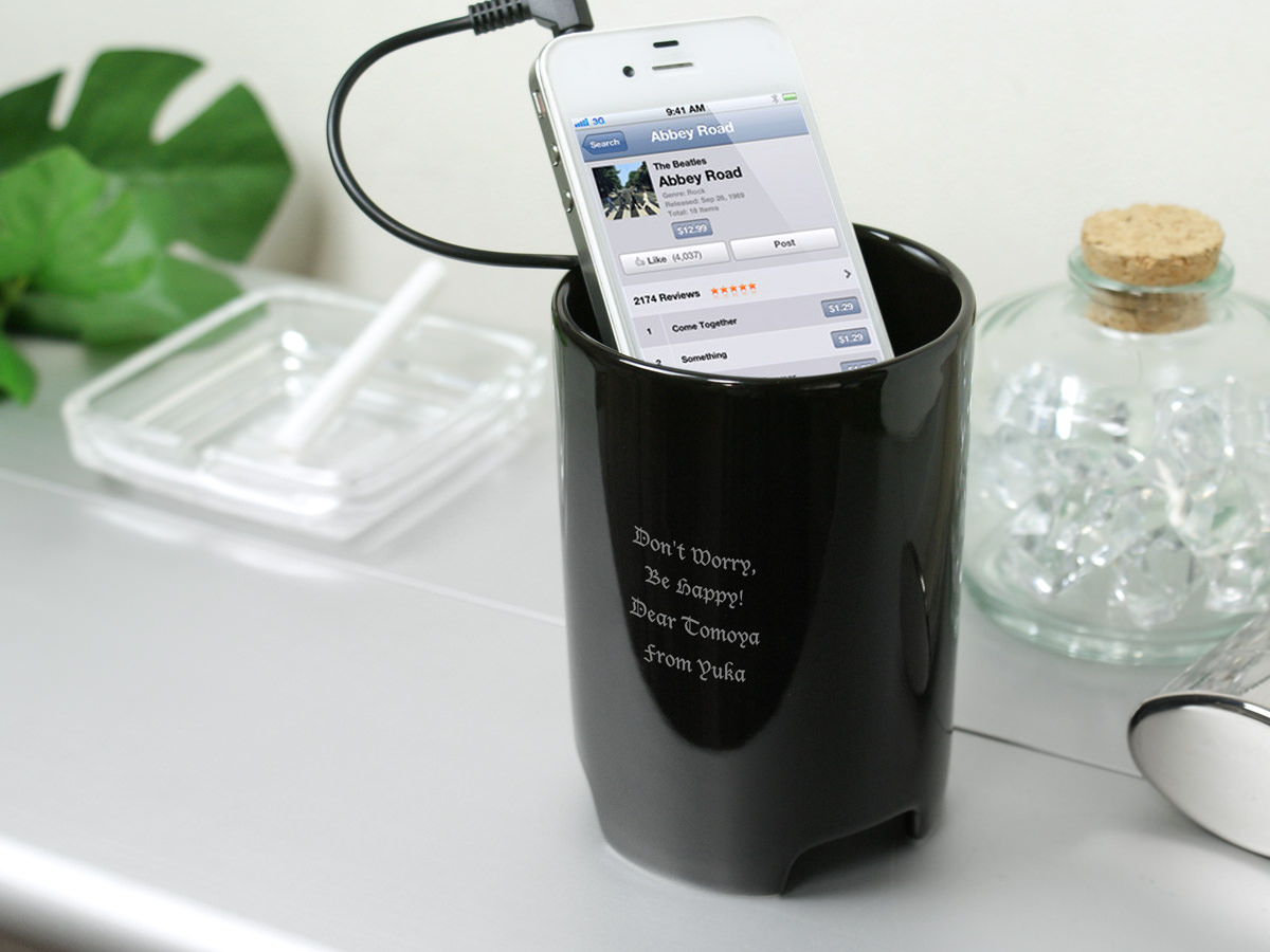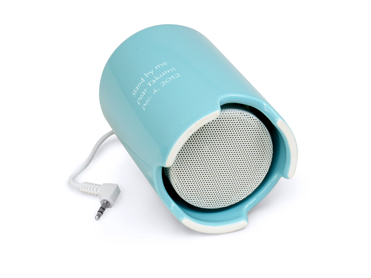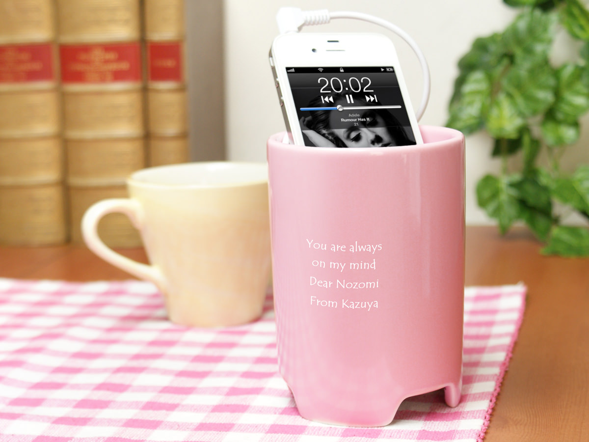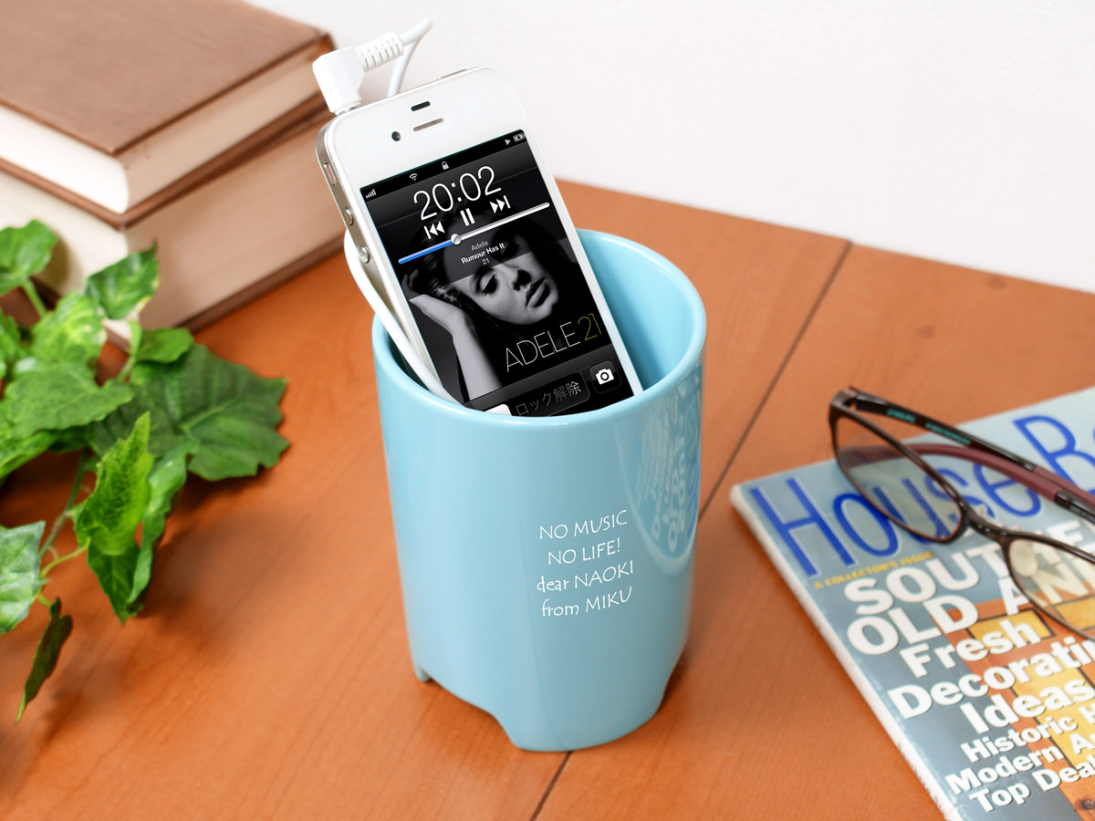 ※ 使用可能な電子機器は接続プラグが差し込み可能なものとなります。 ※ 本製品は電源を必要としないパッシブ型のため、増幅機能はありません。 ※ 接続する機器の出力レベルが小さい場合は充分な音量が得られない事があります。 ※ 音量の調整はお手持ちのプレイヤーの能力に依存します。 ※ 本製品は陶器製のため微妙な寸法、色にバラツキがあります。 ※ 価格には基本的なプリントが含まれております。 ※ イメージにはサンプルのメッセージが入っております。実際にはご希望のフォントで入ります。